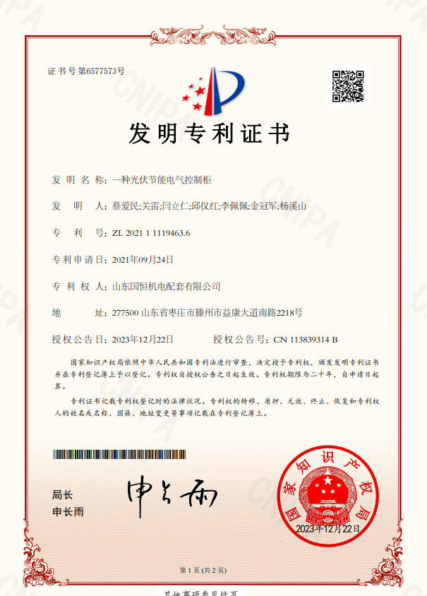 山東國(guó)恒機(jī)電配套有限公司簡(jiǎn) 介 山東國(guó)恒機(jī)電配套有限公司是一家集新能源、高科技、智能化生產(chǎn)研發(fā)、制造、銷售為一體的綜合性現(xiàn)代化高新技術(shù)企業(yè),公司座落在魯班故里、墨子之鄉(xiāng)滕州,公司始建于2005年,注冊(cè)資本1億元,擁有各類中、高級(jí)專業(yè)技術(shù)人員100余名。主營(yíng)業(yè)務(wù)涉及高科技智能電力裝備、新能源儲(chǔ)備輸送,220kv及以下輸變電工程勘察設(shè)計(jì)、制造、銷售、安裝、售電和智能充電樁能效運(yùn)維,并從事生產(chǎn)制造交直流充電樁設(shè)備、成套開關(guān)設(shè)備、各型號(hào)高低壓開關(guān)柜、箱式變電站等電氣設(shè)備,是棗莊地區(qū)唯一一家國(guó)資入股的新能源高端品牌企業(yè)。公司擁有獨(dú)立…